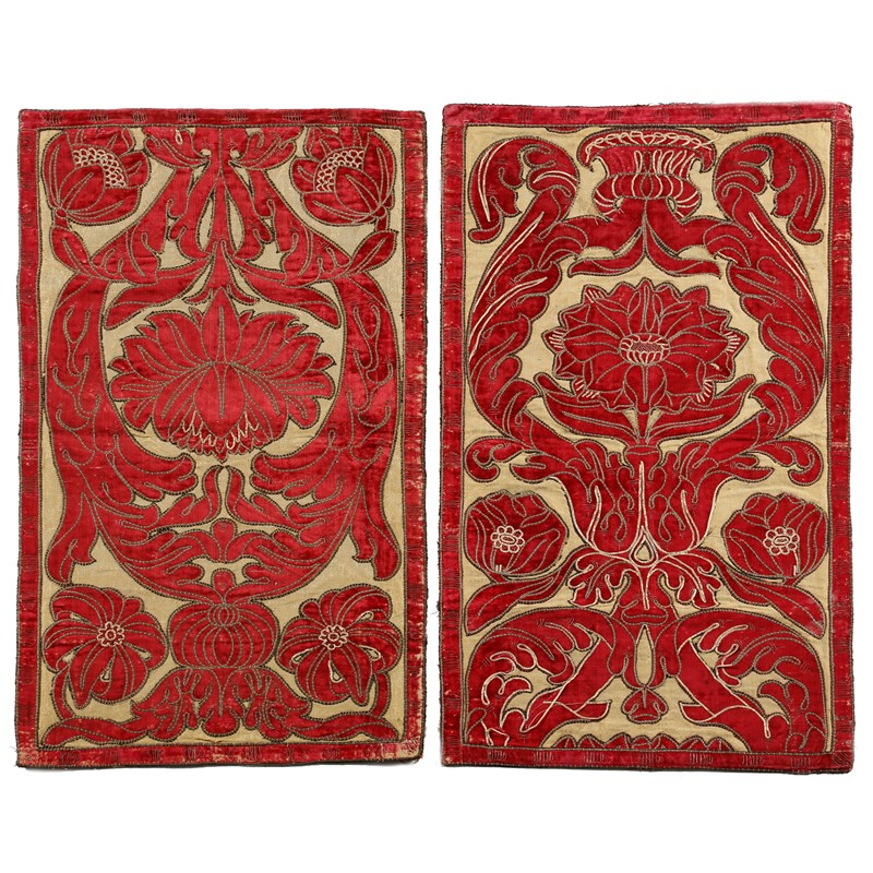 appliqued with red velvet large-scale flowers and scrolls, later backed (2)