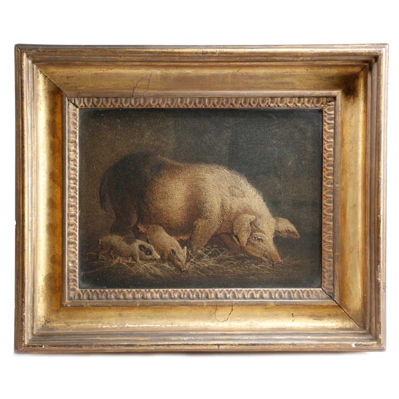 A PAIR OF SAND PICTURES OF PIGS ATTRIBUTED TO BENJAMIN ZOBEL AFTER GEORGE MORLAND