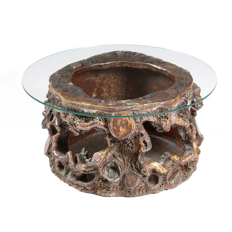 in the form of a tree trunk, with a later circular glass top