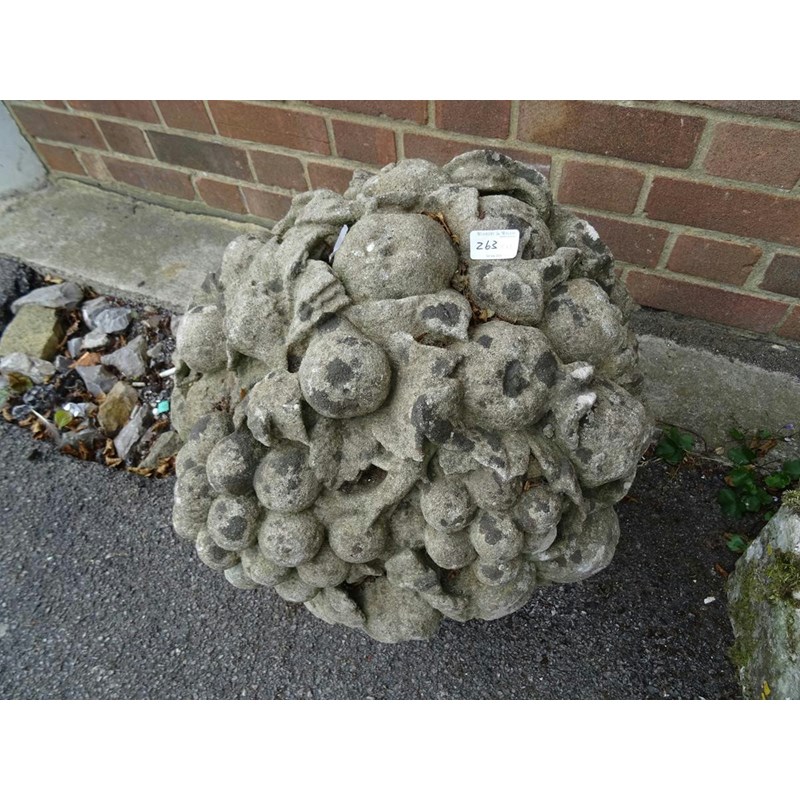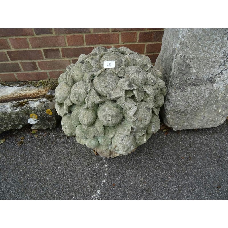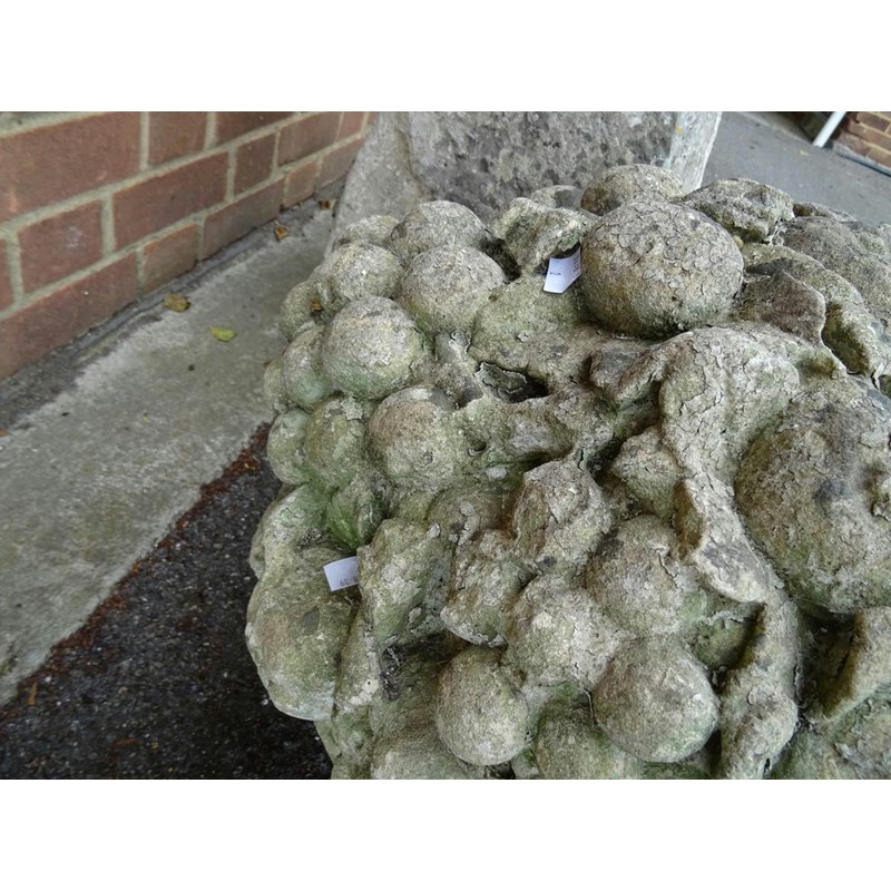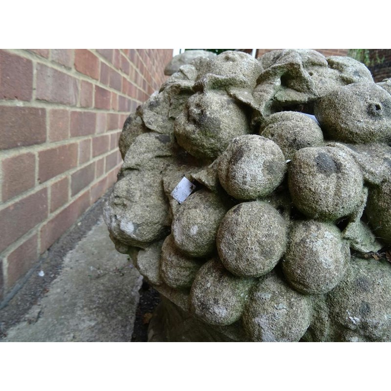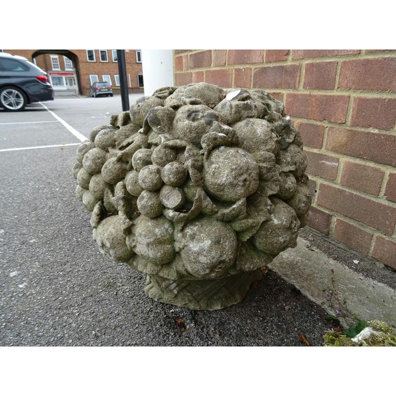 A pair of basket of fruit stone finials, 48.5cm high, 50cm wide. (2)
