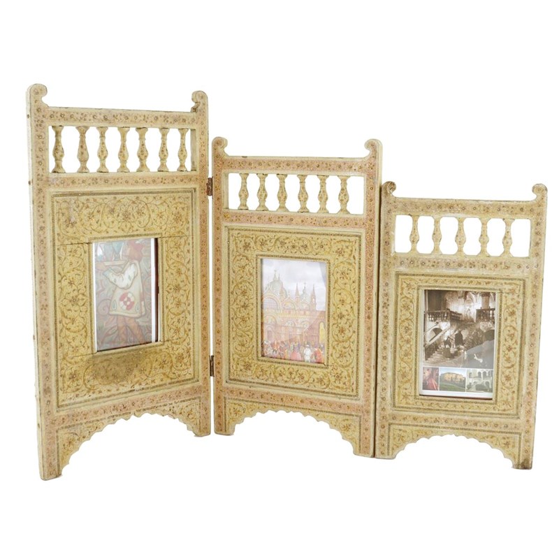 A Kashmiri lacquer three-fold frame