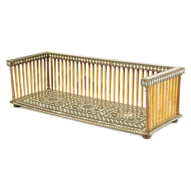λA late 19th century Ceylonese ebony and ivory inlaid book stand