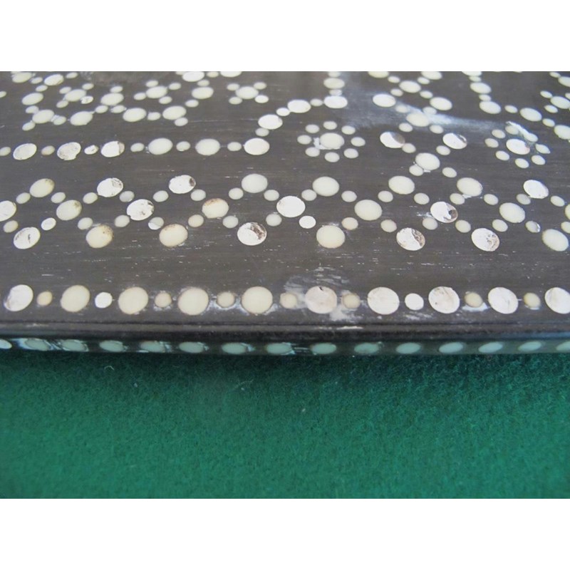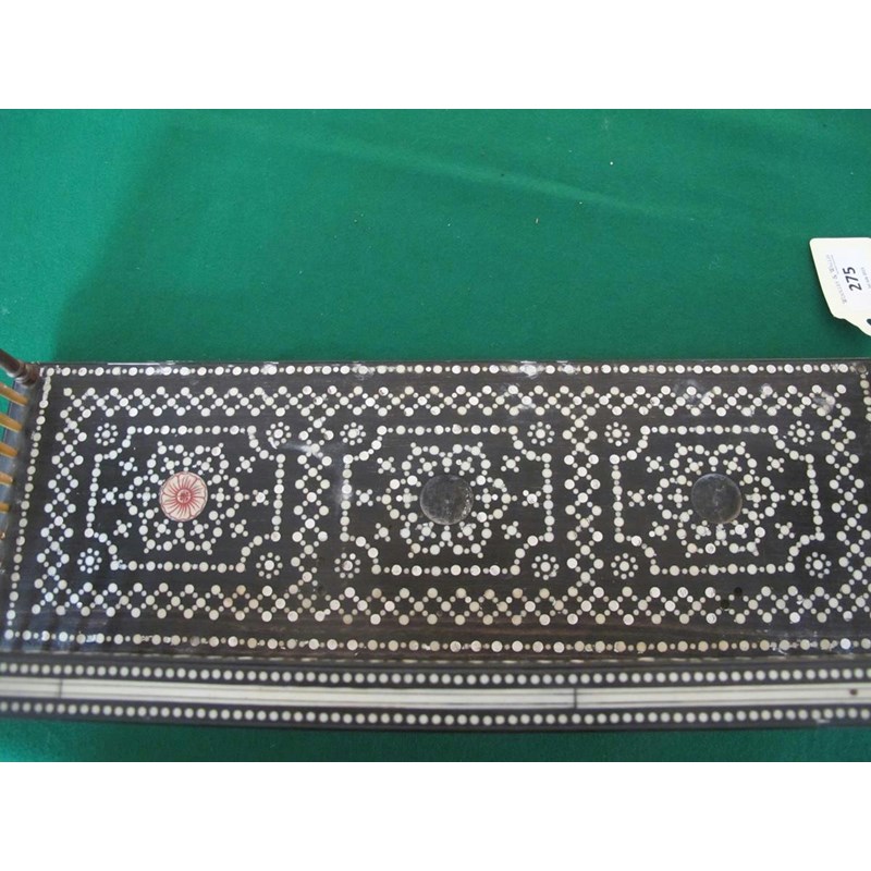 λA late 19th century Ceylonese ebony and ivory inlaid book stand, with a porcupine quill gallery and dot decoration, 12.5cm high, 41.7cm wide, 14.7cm deep.