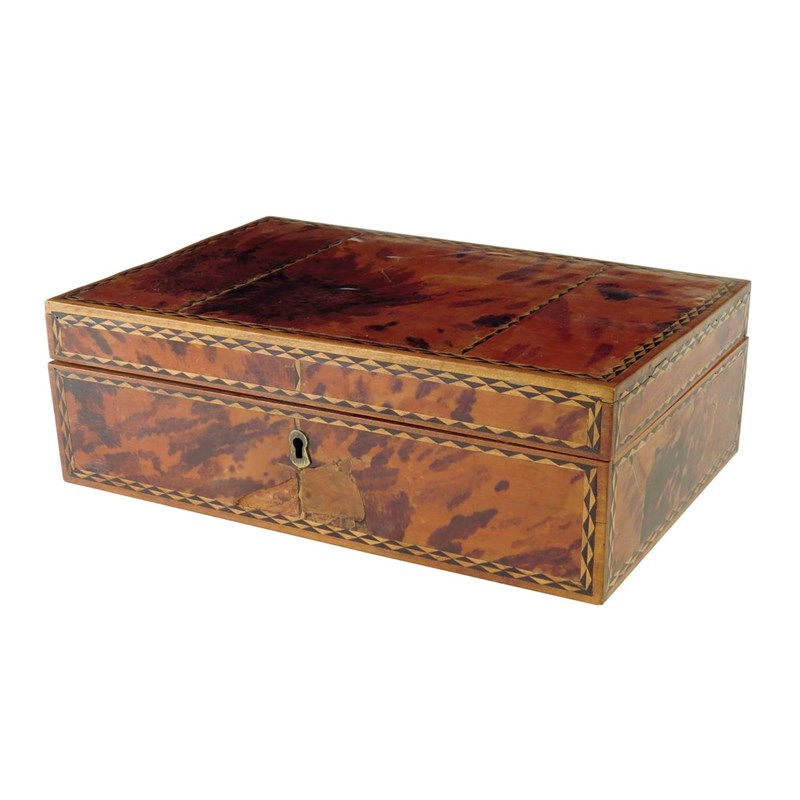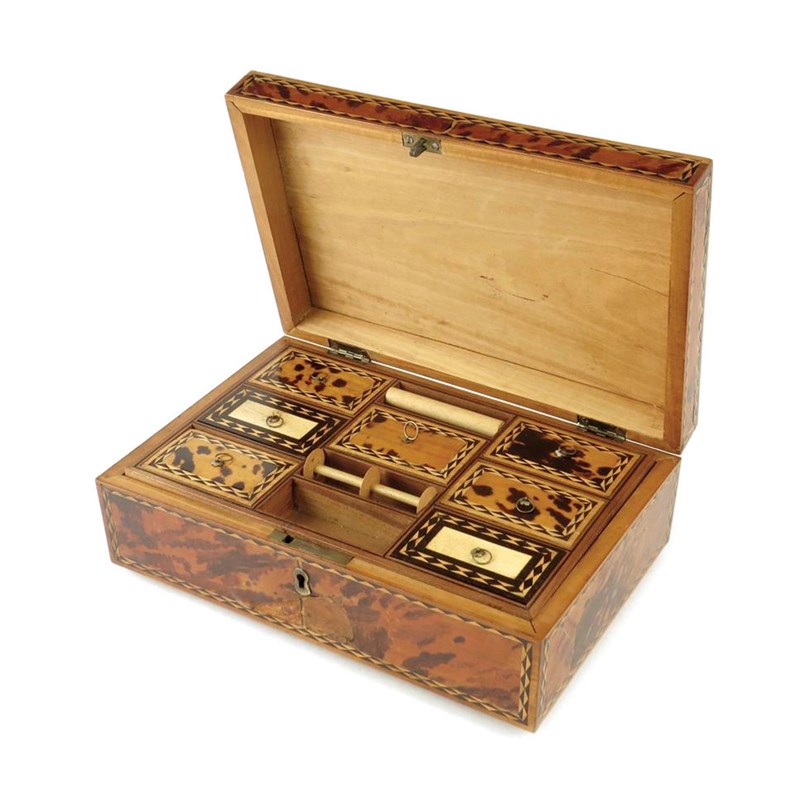 A Ceylonese satinwood and tortoiseshell sewing box