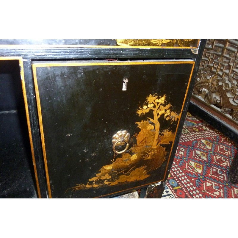 A Japanese black lacquer side cabinet