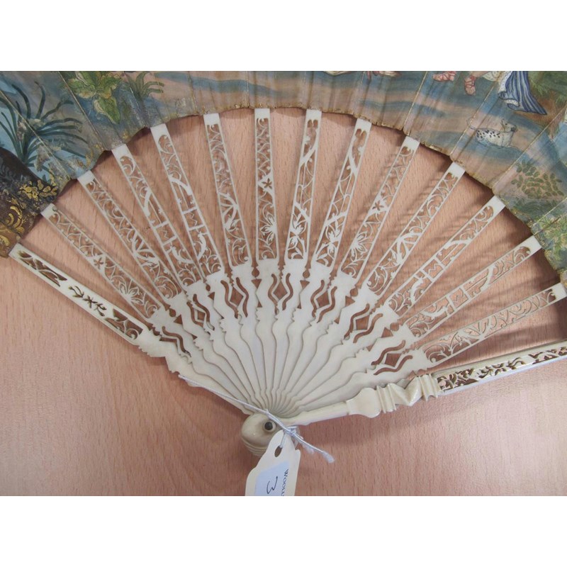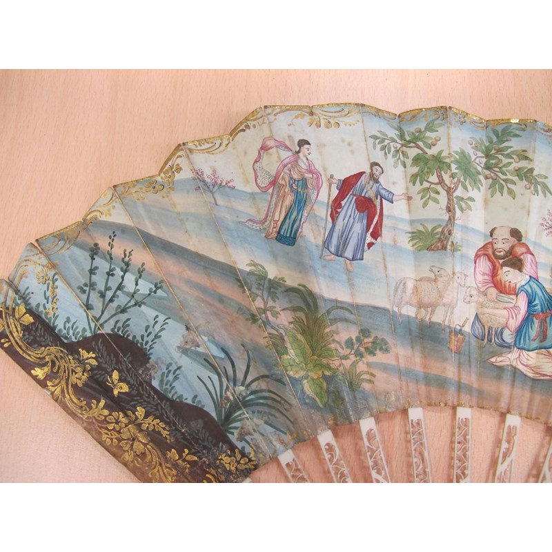 λAn 18th century Portuguese colonial hand painted fan
