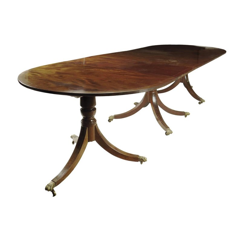 A mahogany triple pillar dining table in Regency style