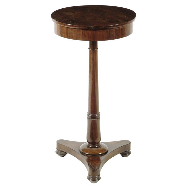 λA William IV rosewood jardinère table, the circular detachable top revealing a lift-out zinc liner, 73.7cm high, 38cm diameter.