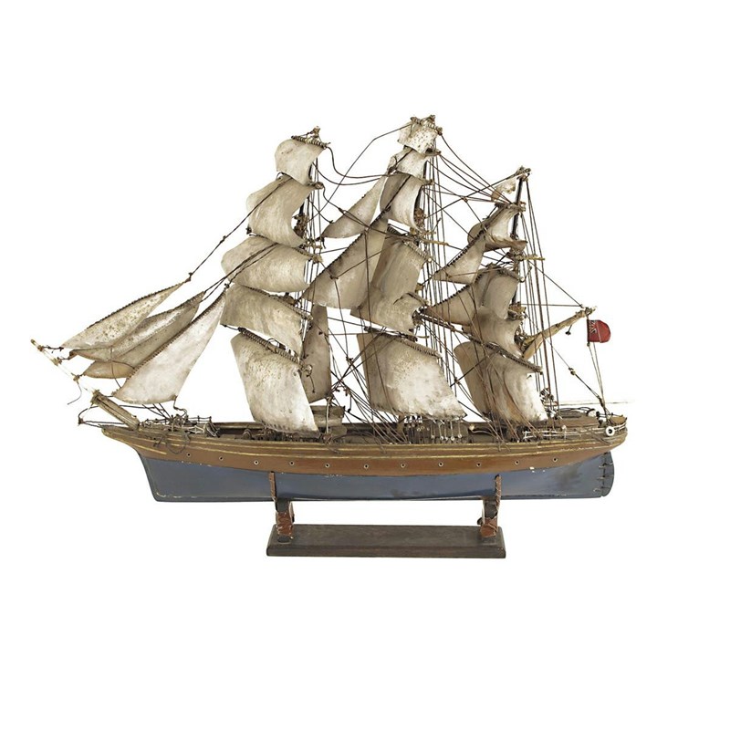A painted wood model of the Cutty Sark