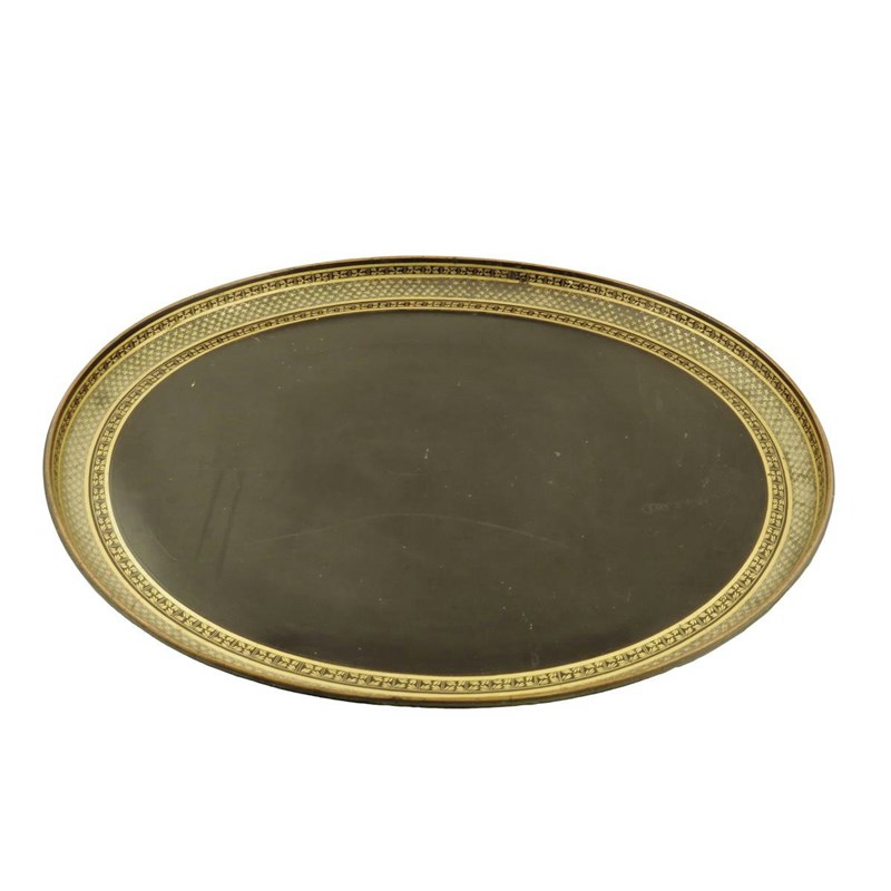 A Victorian papier-maché tray, with gilt diaper borders, the reverse marked 'HODGES & SONS IRONMONGERS DUBLIN', 58.8 x 70.9cm.