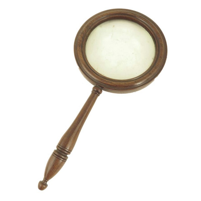 λAn early Victorian rosewood gallery glass, with a moulded frame and turned handle, 33.2cm high, 16.4cm diameter.