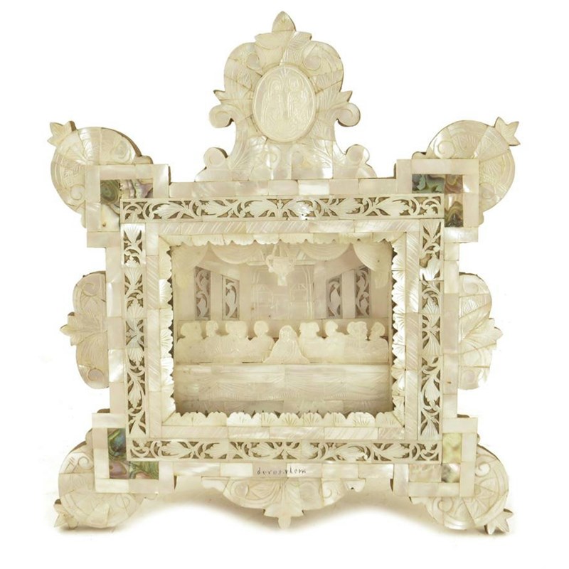 A late 19th century Jerusalem mother of pearl diorama of the Last Supper