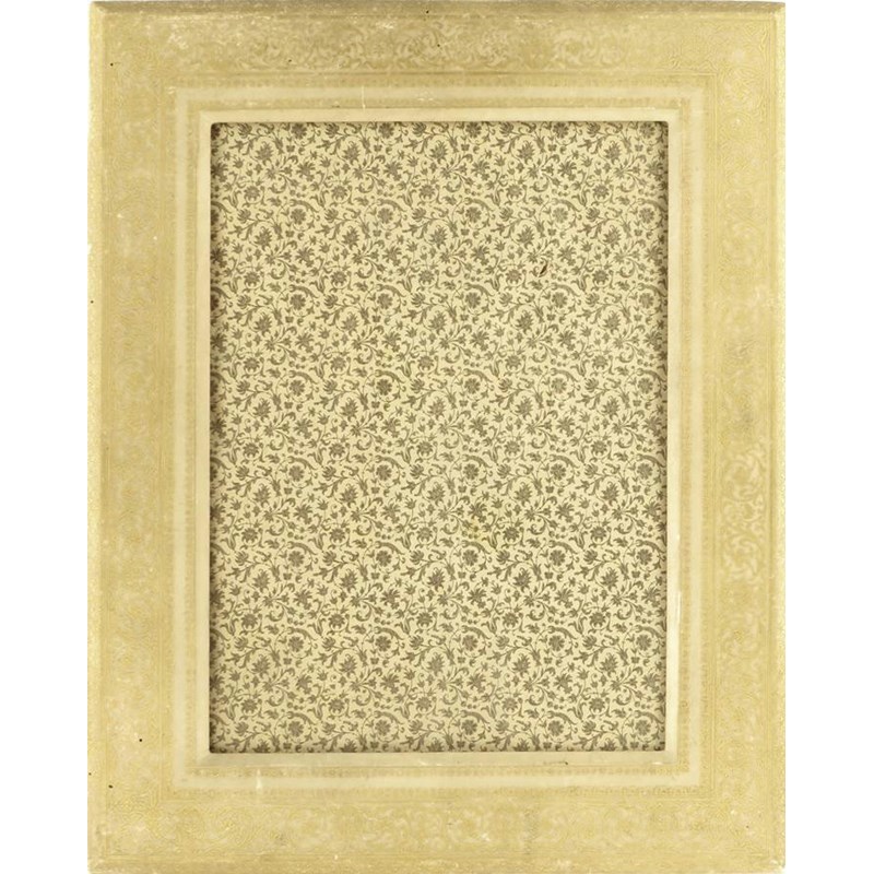 A vellum photograph frame, decorated in gilt with scrolling foliage, early 20th century, 50 x 40cm.