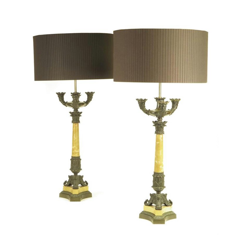 A pair of Louis Philippe bronze and Siena marble candelabra
