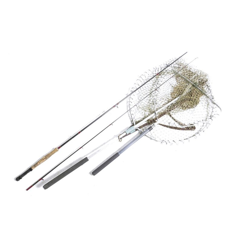 A fishing rod by Berkley, together with two landing nets. (3)