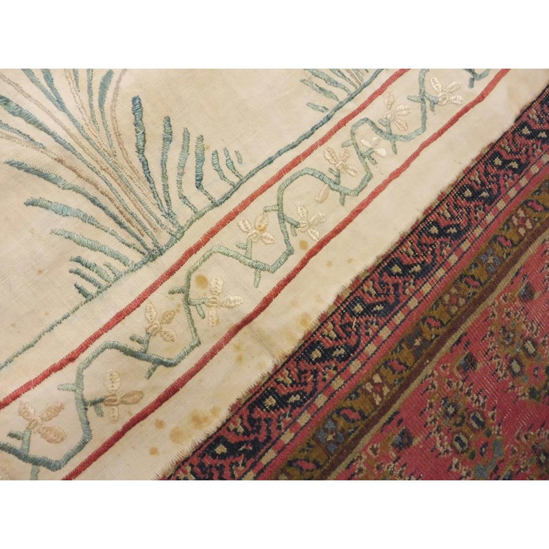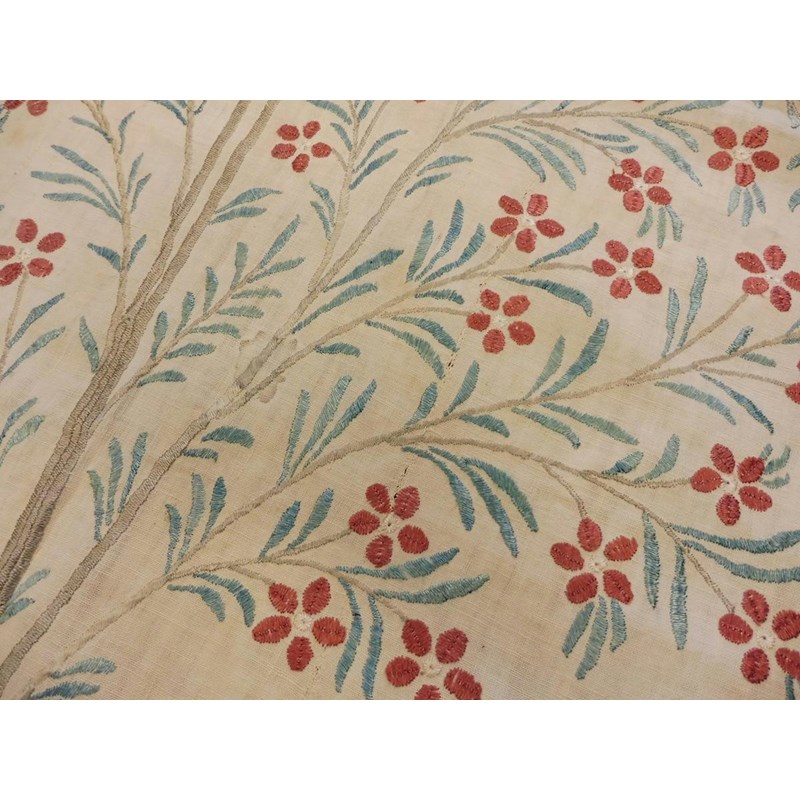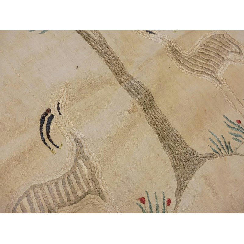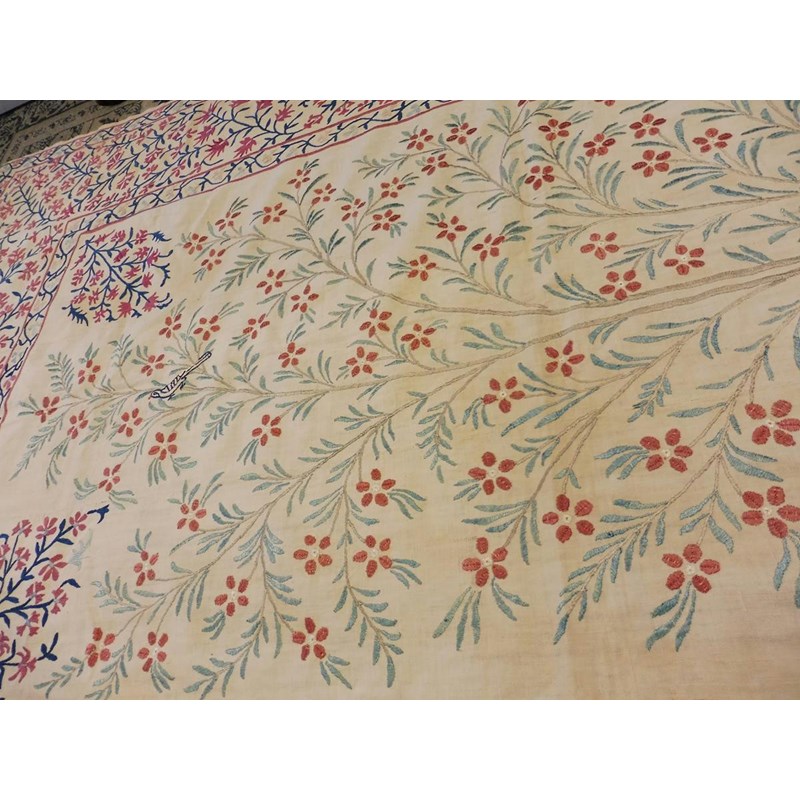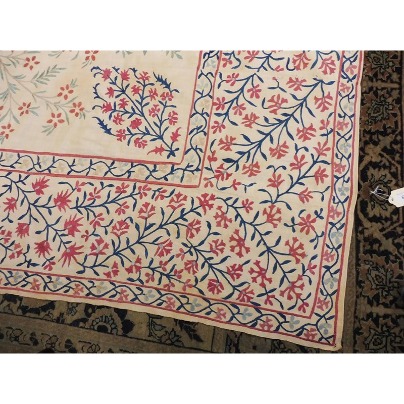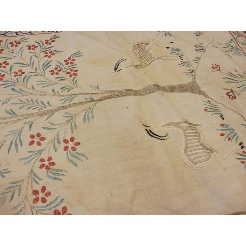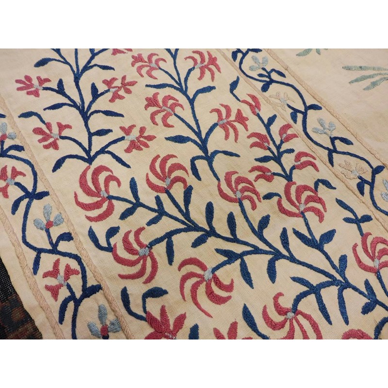A Suzani embroidered hanging, worked with coloured silks, decorated with a tree with two rams with scrolling foliage borders, early 20th century, 223.5 x 136.5cm.