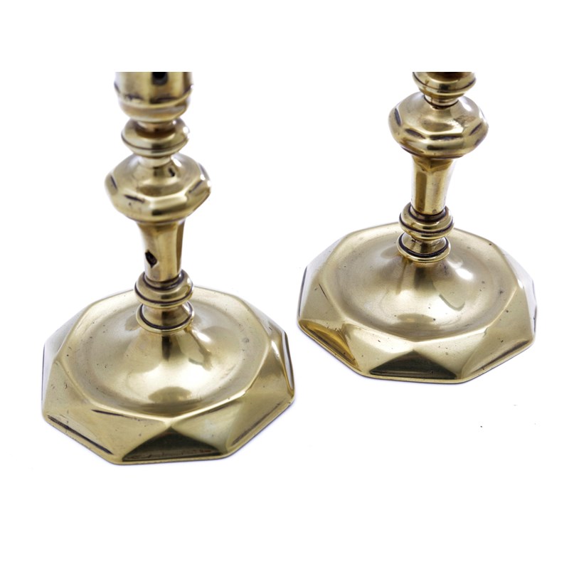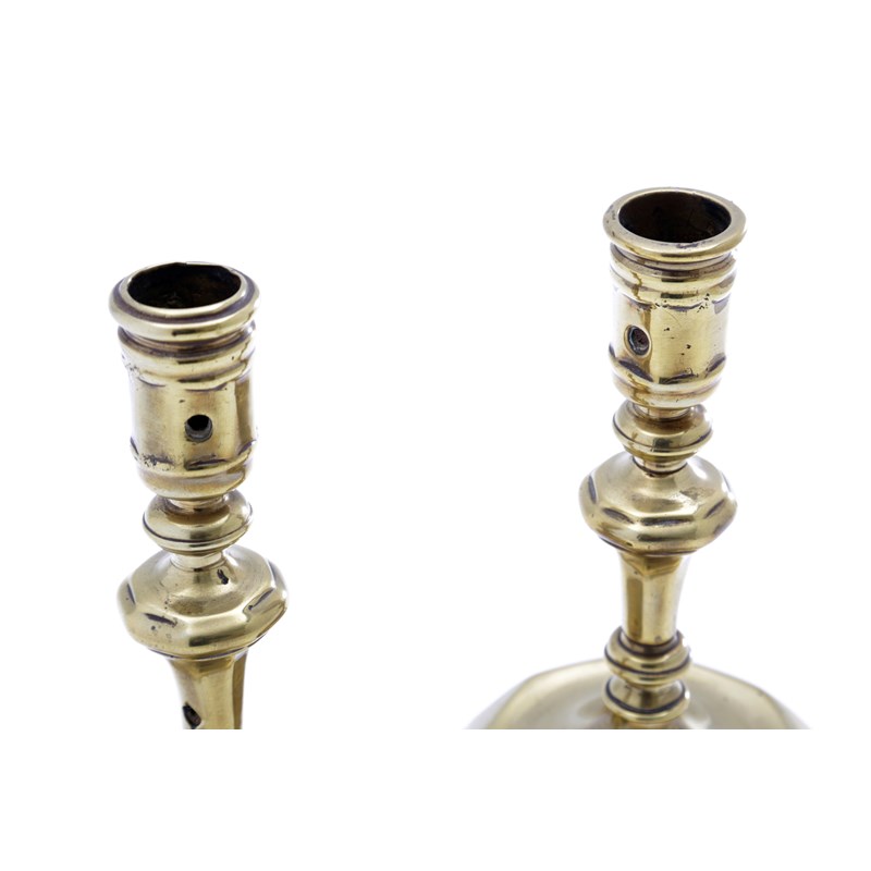 A PAIR OF NORTH EUROPEAN BRASS CANDLESTICKS