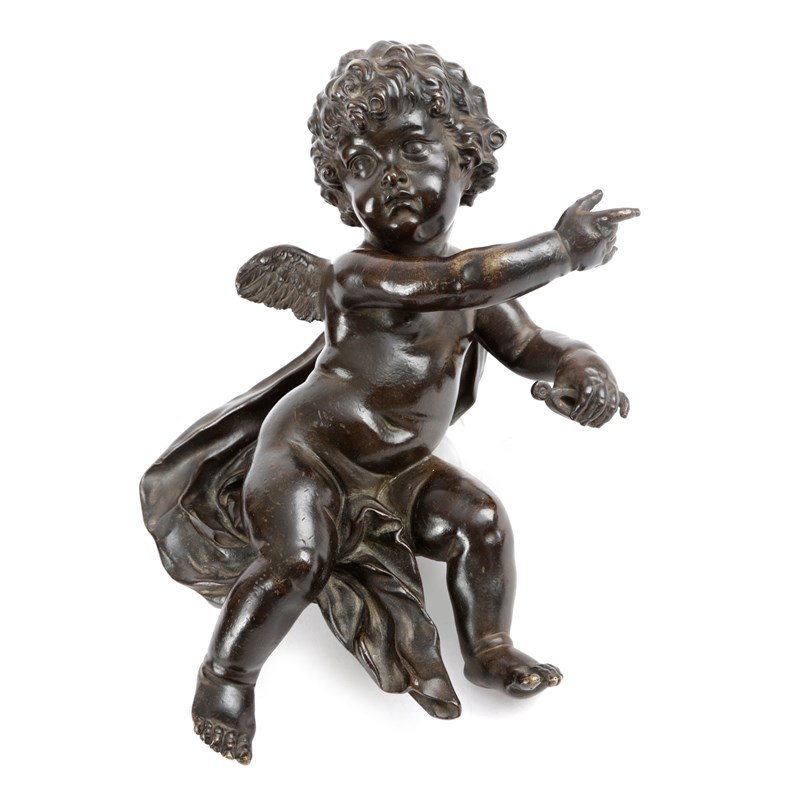 A BAROQUE BRONZE MODEL OF A CHERUB