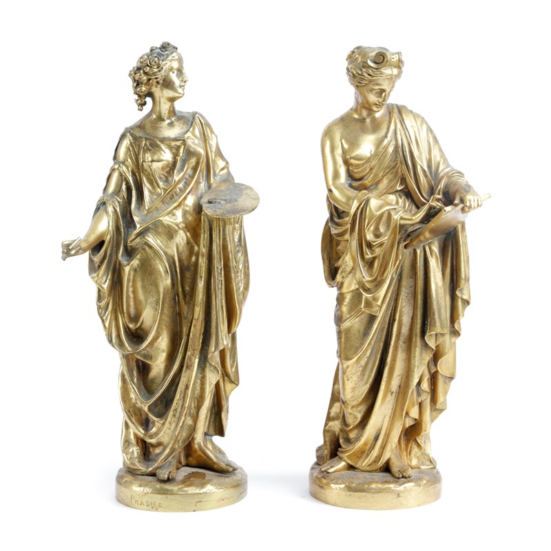 A PAIR OF FRENCH GILT BRONZE FIGURES OF CLASSICAL MAIDENS
