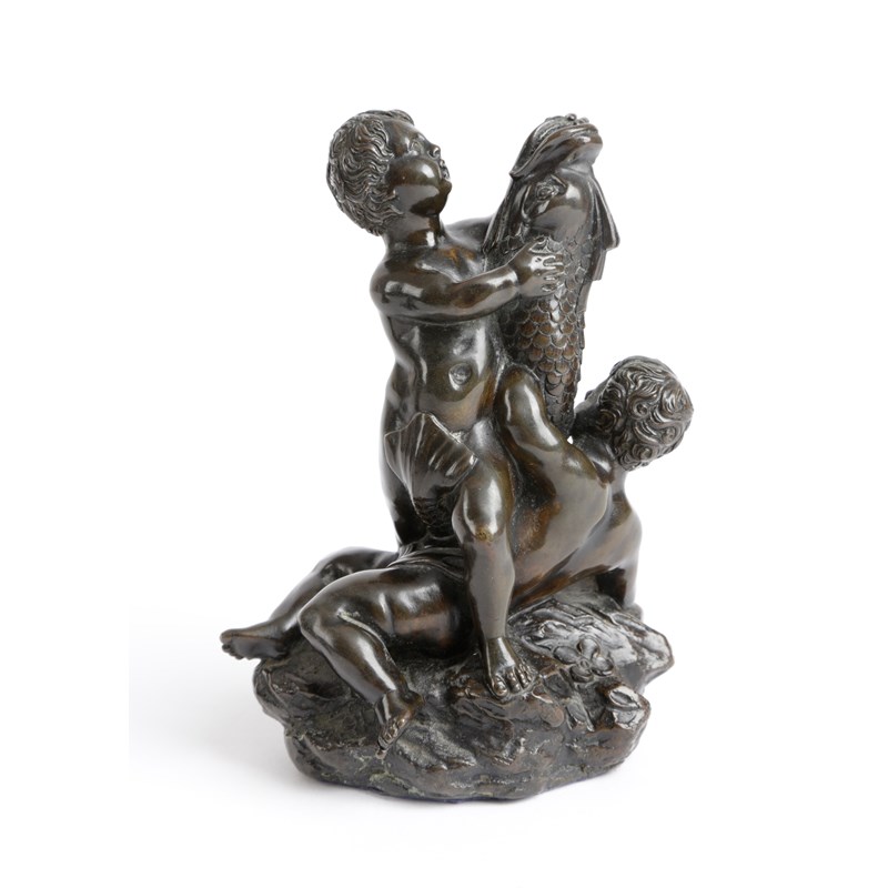 AN ITALIAN BRONZE GROUP OF TWO PUTTI