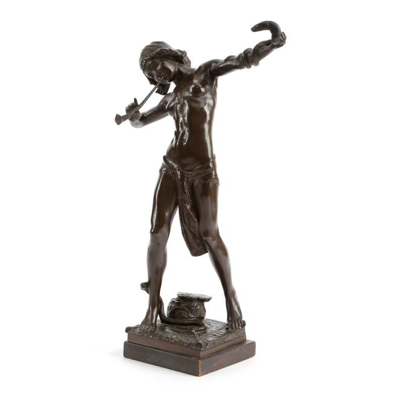 A BRONZE FIGURE OF A SNAKE CHARMER