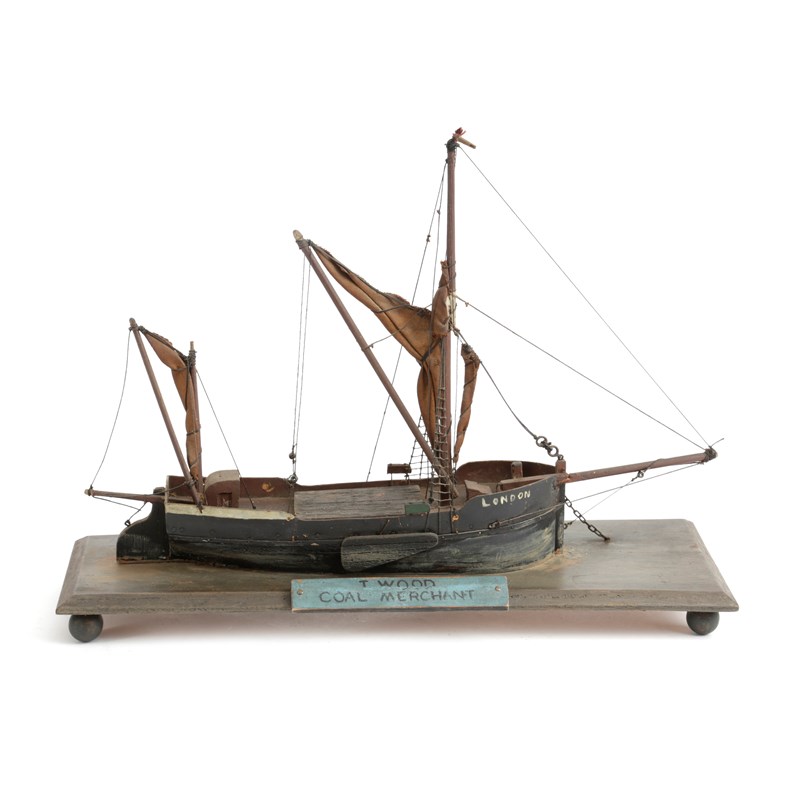 the boat named 'London' and with an applied plaque inscribe 'T. Wood Coal Merchant', the underside with a faint signature and the date '1932'