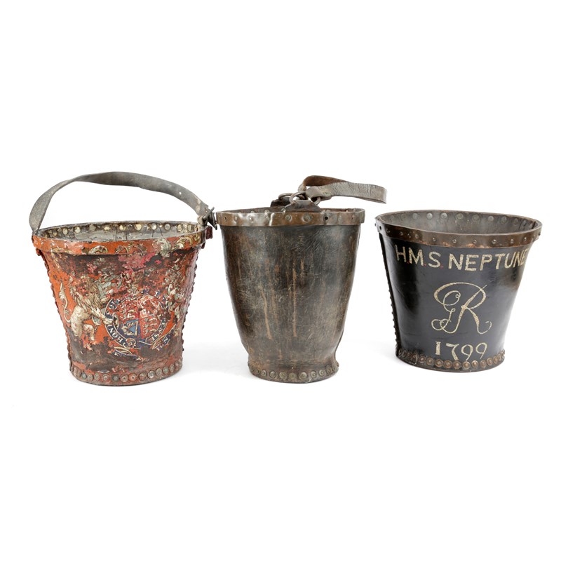 one emblazoned with the Royal Coat of Arms and one with an inscription 'H.M.S. Neptune GR 1799', together with a similar example (3)