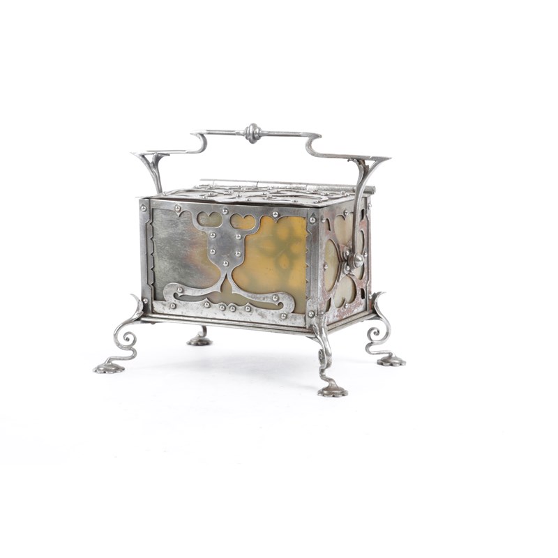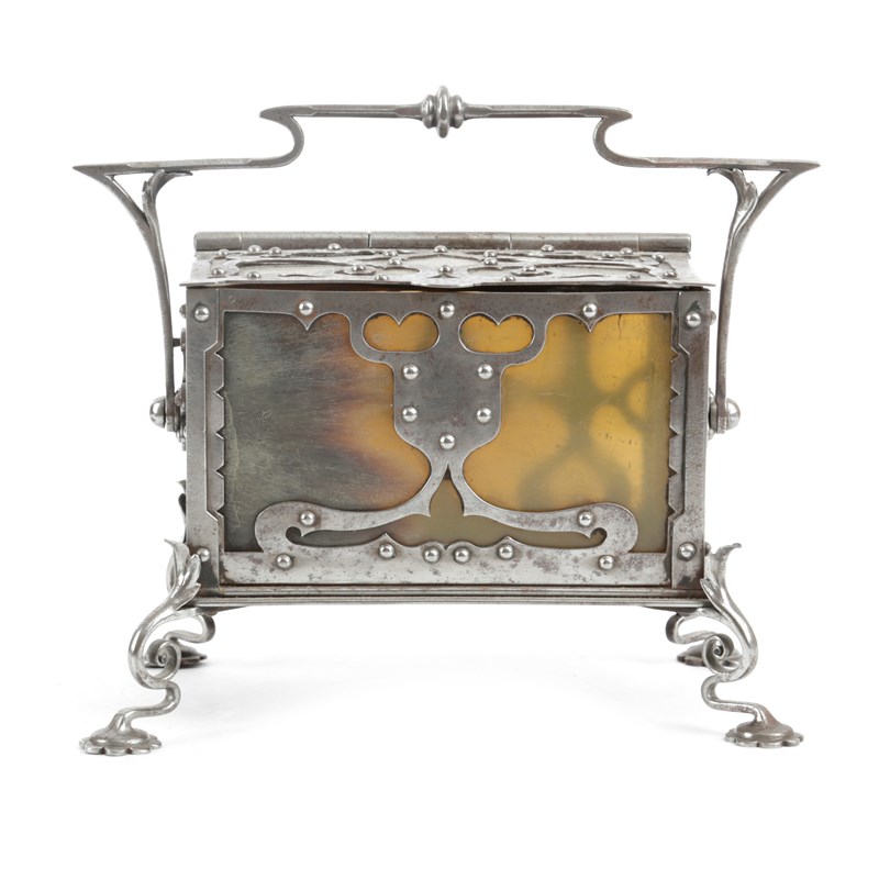 AN ART NOUVEAU STEEL AND HORN CASKET
