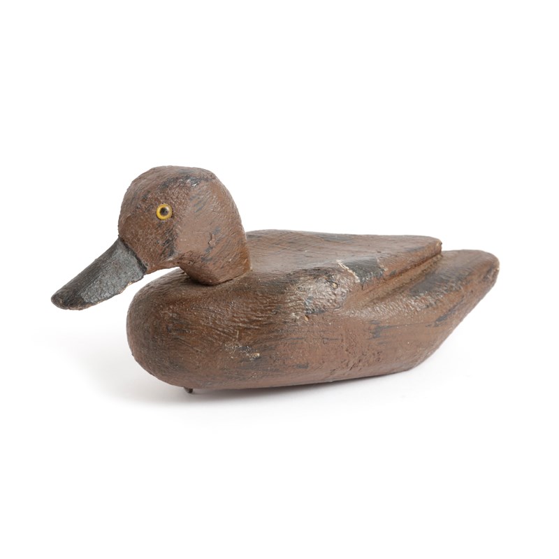 A CARVED WOOD AND PAINTED DECOY DUCK
