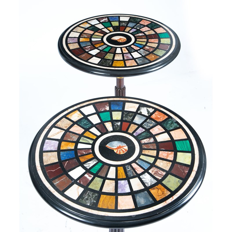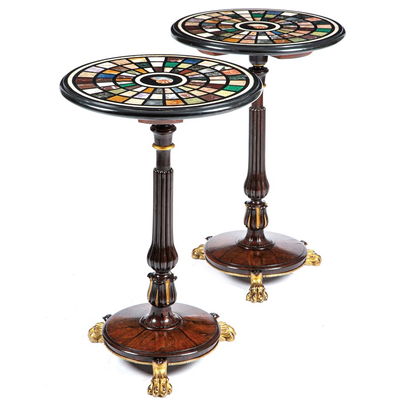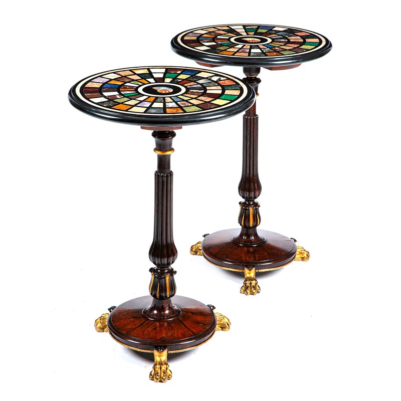 λ A PAIR OF SPECIMEN MARBLE PIETRA DURA AND ROSEWOOD OCCASIONAL TABLES