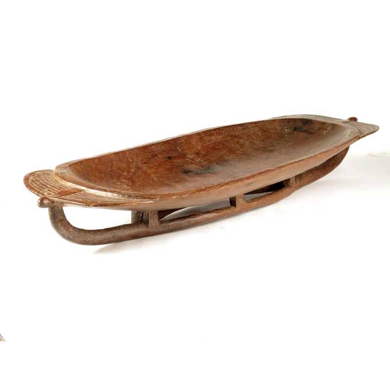 An Oceanic feast bowl, of oblong form with carved flying fish lifts and on an open base, 32½in (82.5cm) long.