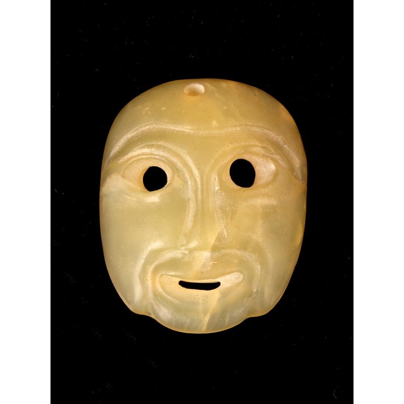 A green stone Shaman amulet mask, possibly North American, 2½in (6.3cm) high.