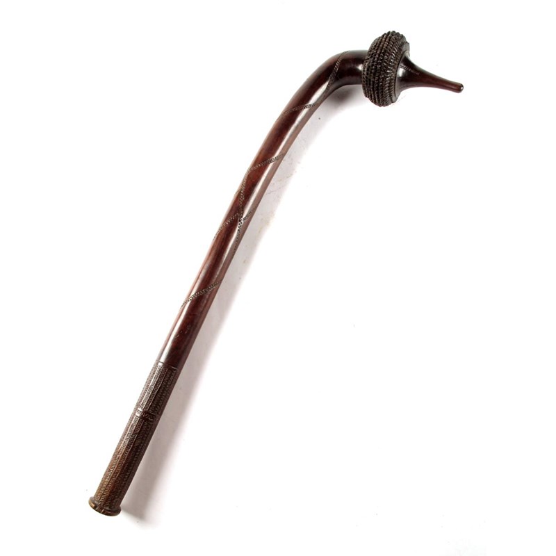 A Fiji totokia, pineapple club, the head with eight bands of carved spikes to a conical point, with incised zig-zag lines as to the shaft and grip, 32½in (82.5cm) long.