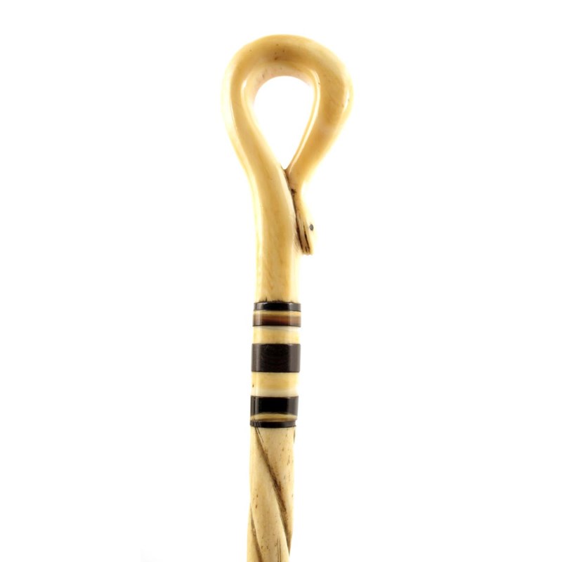 A 19th century bone walking cane, with a serpent loop handle and spiral twist stem, 34½in (87.4cm) long.