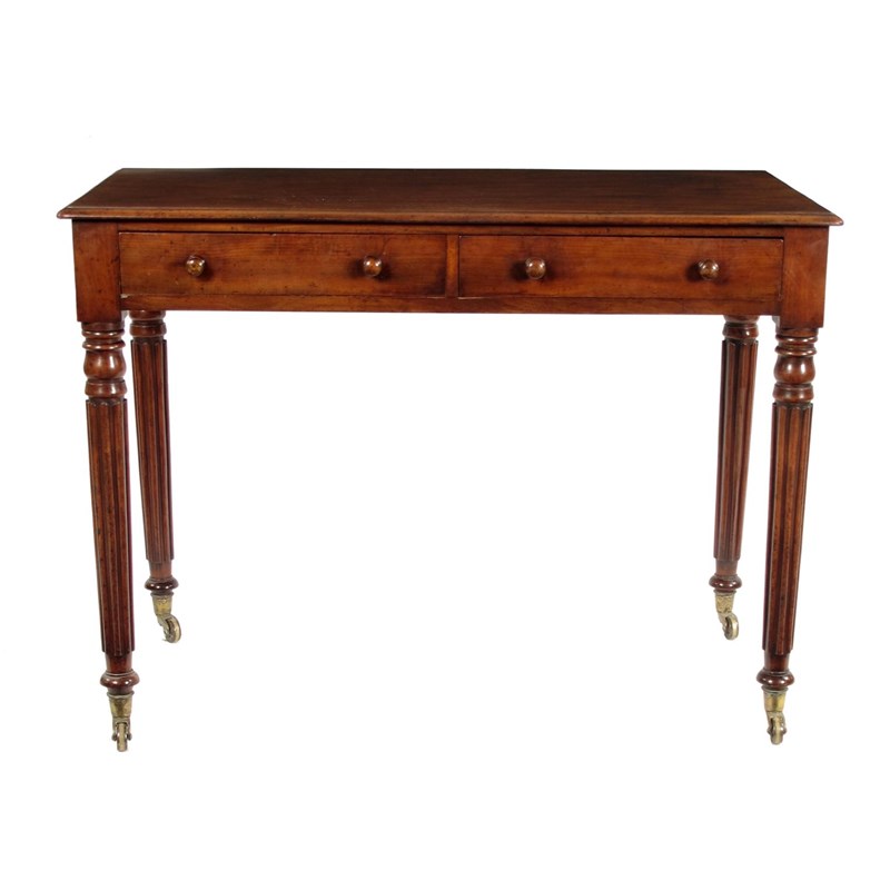 A William IV mahogany side table in the manner of Gillows, on ribbed tapering legs to brass castors, 30¾in (78cm) high, 41¾in (106cm) wide, 21¼in (54cm) deep.