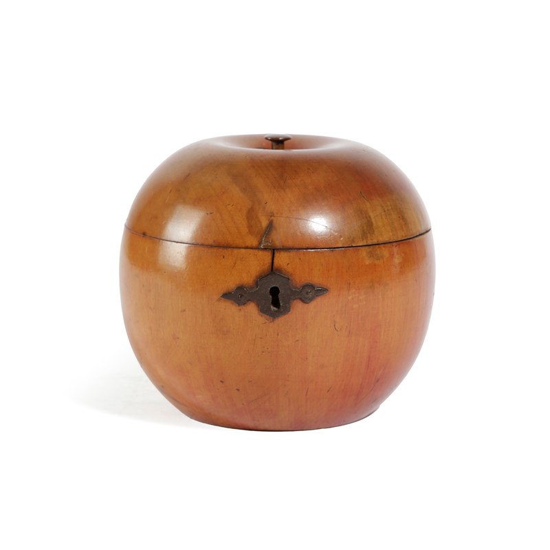 A TREEN FRUITWOOD TEA CADDY IN THE FORM OF AN APPLE