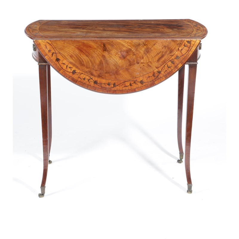 A FINE GEORGE III MAHOGANY AND MARQUETRY PEMBROKE TABLE