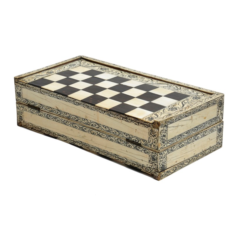 See Amin Jaffer, 'Furniture from British Indian and Ceylon', p. 209, fig. 97 for a similar folding games box.