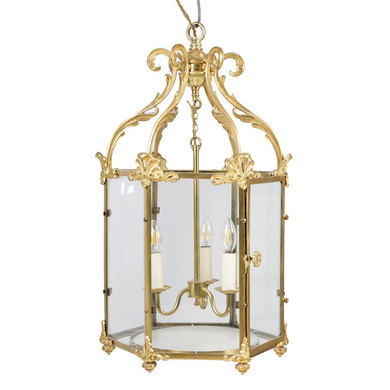A GILT BRASS HEXAGONAL HALL LANTERN