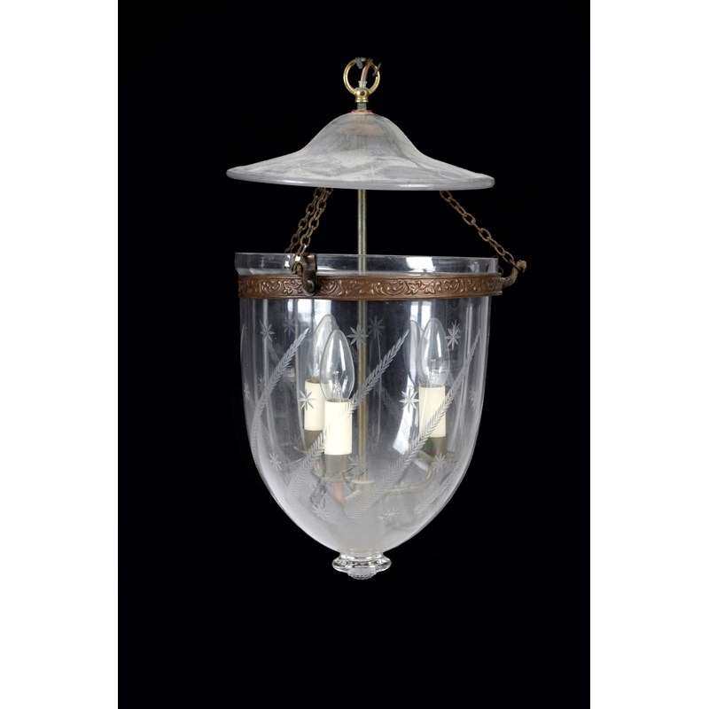 A PAIR OF GLASS AND BRASS HALL LANTERNS AND COVERS