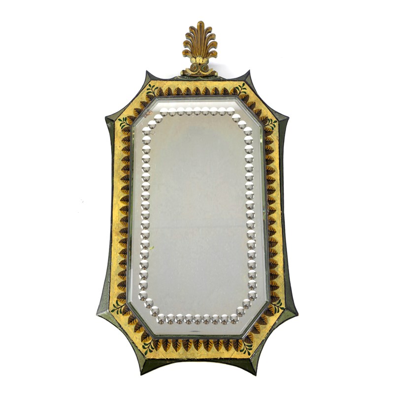 the canted rectangular plate within a band of rondels on a shaped and painted canted rectangular mount with an anthemion crest