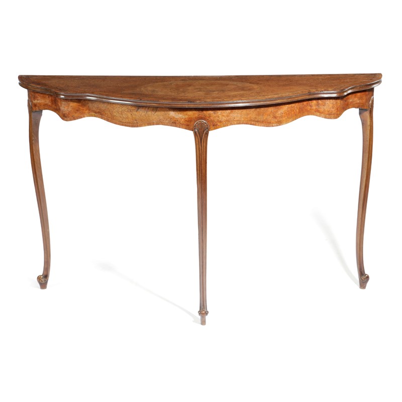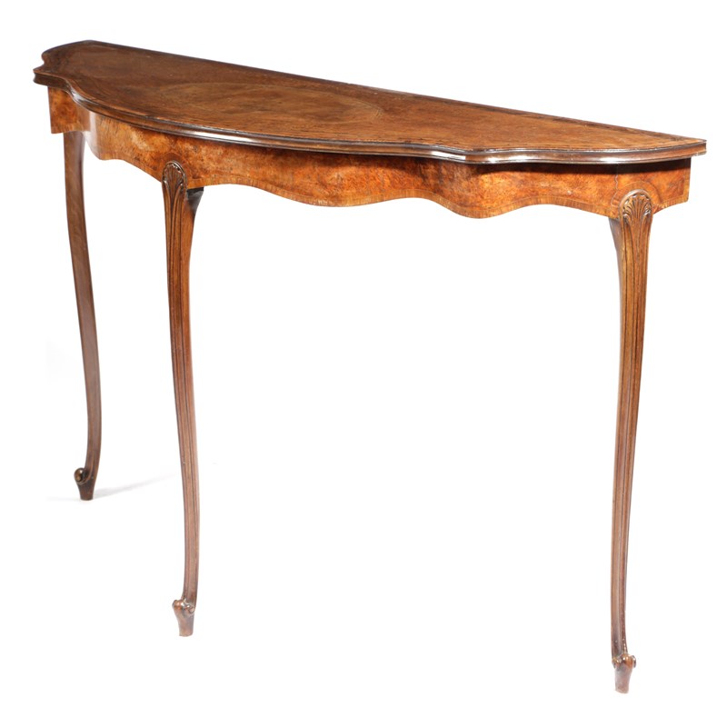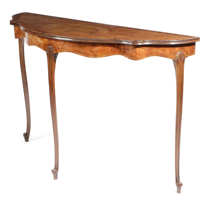 A FINE GEORGE III THUYA WOOD SERPENTINE SIDE TABLE