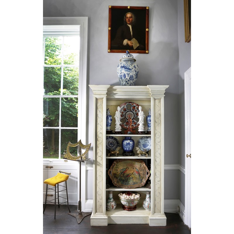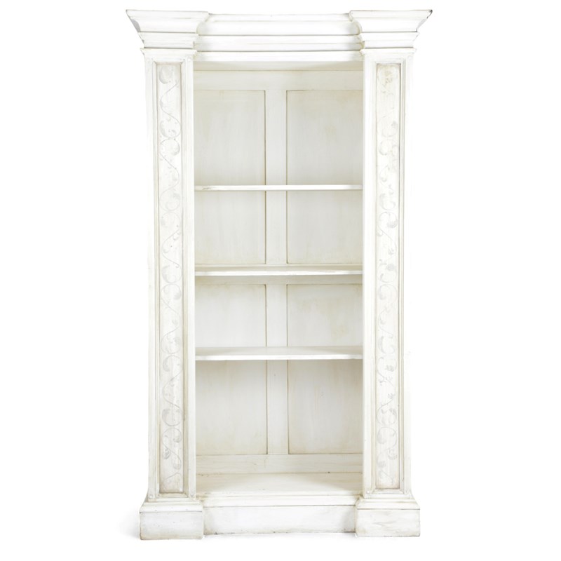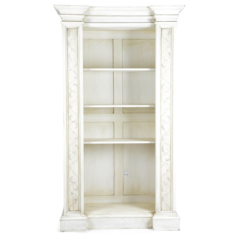 A PAIR OF PAINTED OPEN BOOKCASES