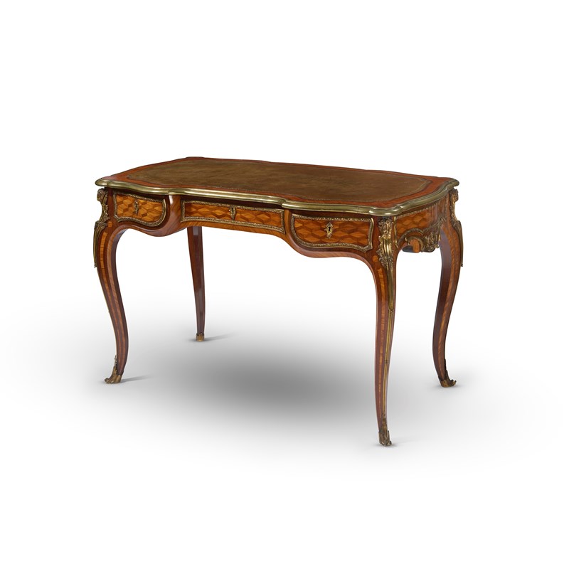 A VICTORIAN KINGWOOD AND TULIPWOOD BUREAU PLAT IN LOUIS XV STYLE