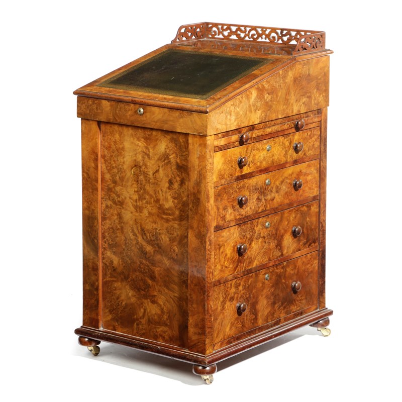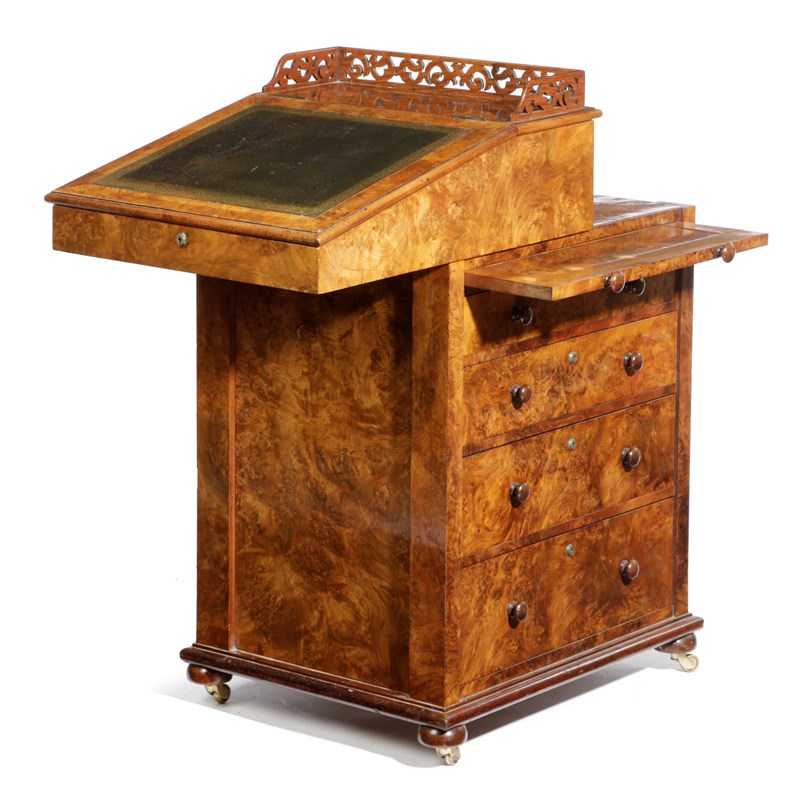 AN EARLY VICTORIAN SCOTTISH BURR WALNUT DAVENPORT
