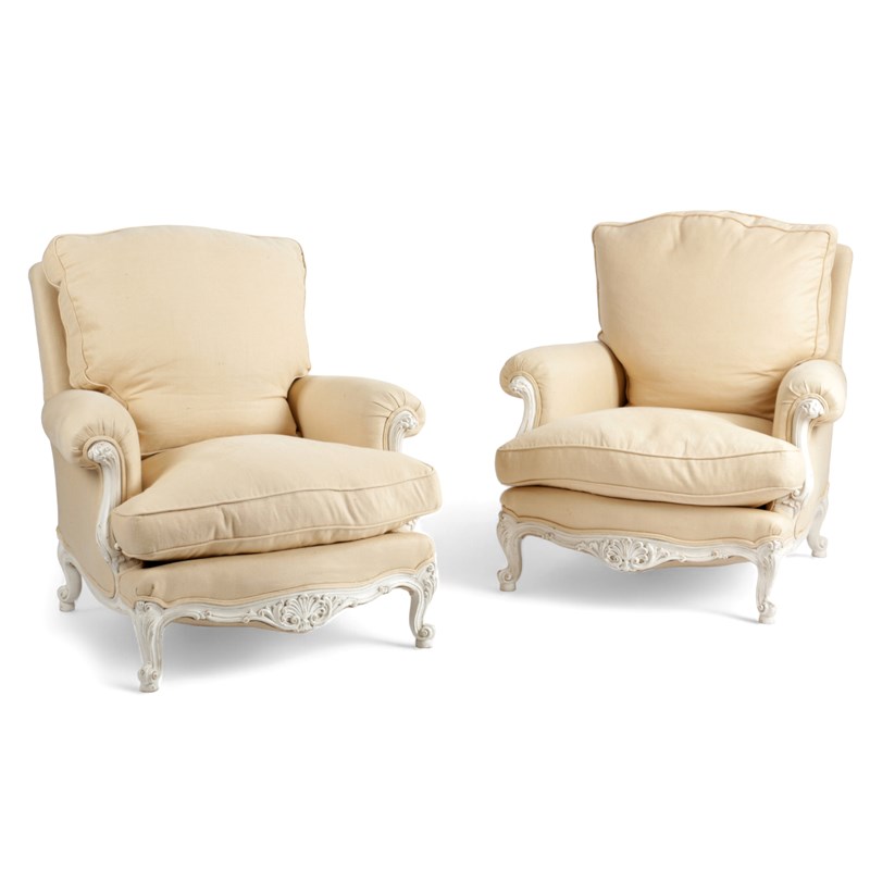 A PAIR OF WHITE PAINTED BERGÈRE ARMCHAIRS