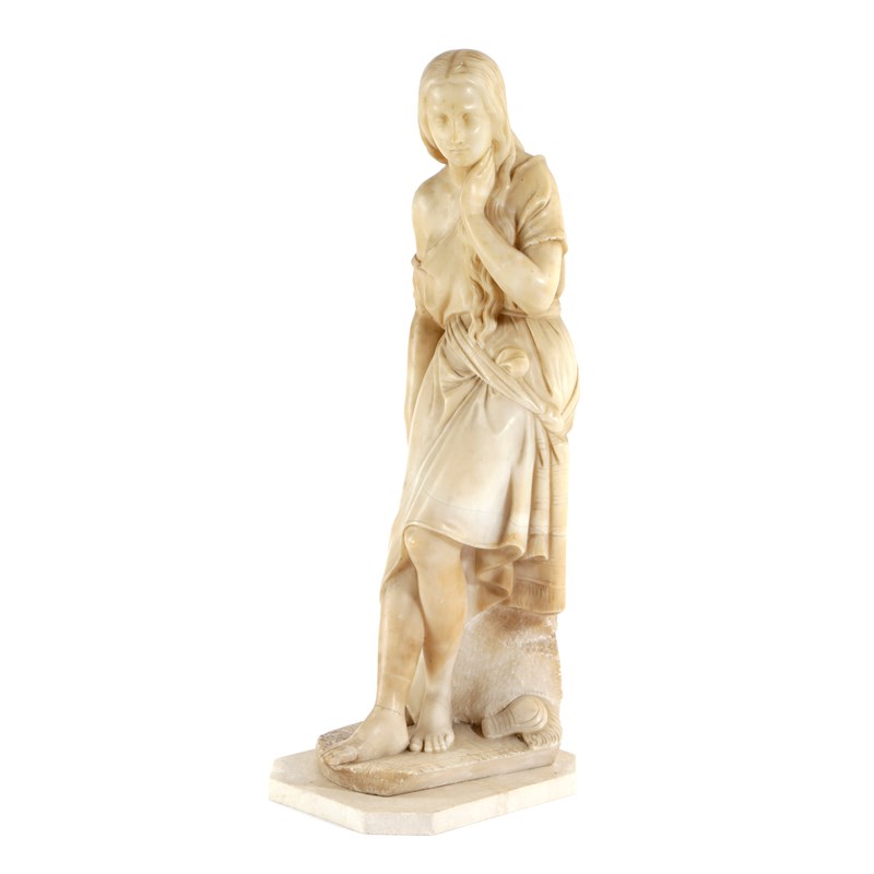 AN ITALIAN ALABASTER FIGURE OF A PENSIVE MAIDEN
