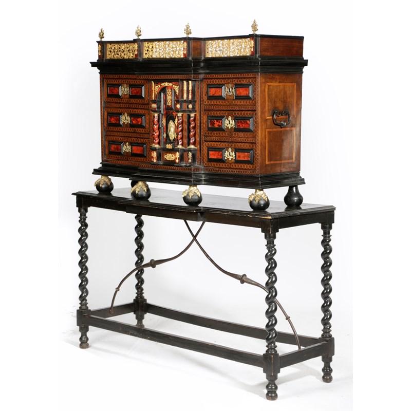 λ A SPANISH WALNUT, ROSEWOOD AND TORTOISESHELL CABINET ON STAND