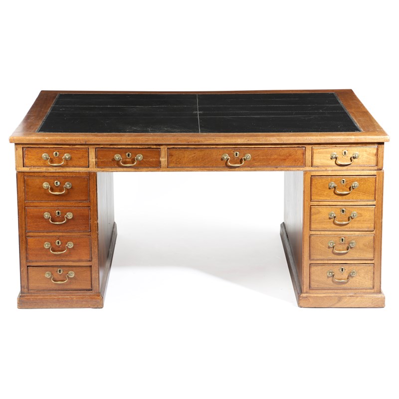 A LARGE VICTORIAN MAHOGANY TWIN PEDESTAL PARTNER'S DESK