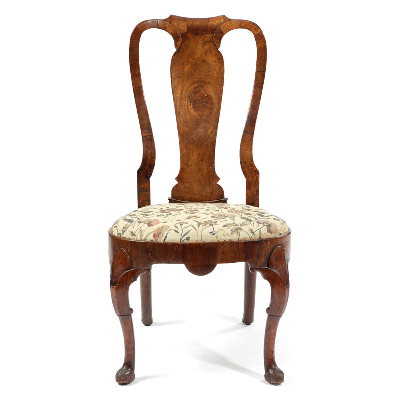 with a solid vase shaped splat back above a drop-in seat on cabriole front legs